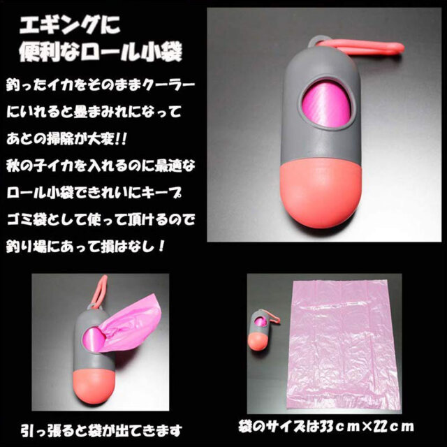 イカ入れにまたはゴミ袋に便利なロール小袋にイカ締め具もお付けします!