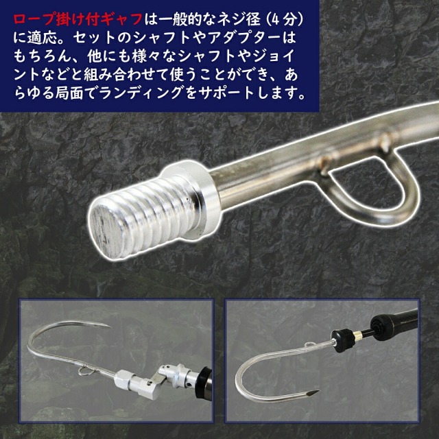 一般的なネジ径(4分)に適応するのでセットのシャフトやアダプターはもちろん、他にも様々なシャフトやジョイントなどと組み合わせて使用でき、あらゆる局面でランディングをサポートします