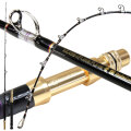 キメジやカツオも視野に入れた大型青物専用の同シリーズは強靭なグラスソリッドブランクだけでなく、富士工業のLC+HBガイドやアルミリールシートを採用。