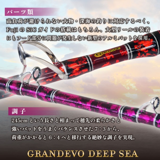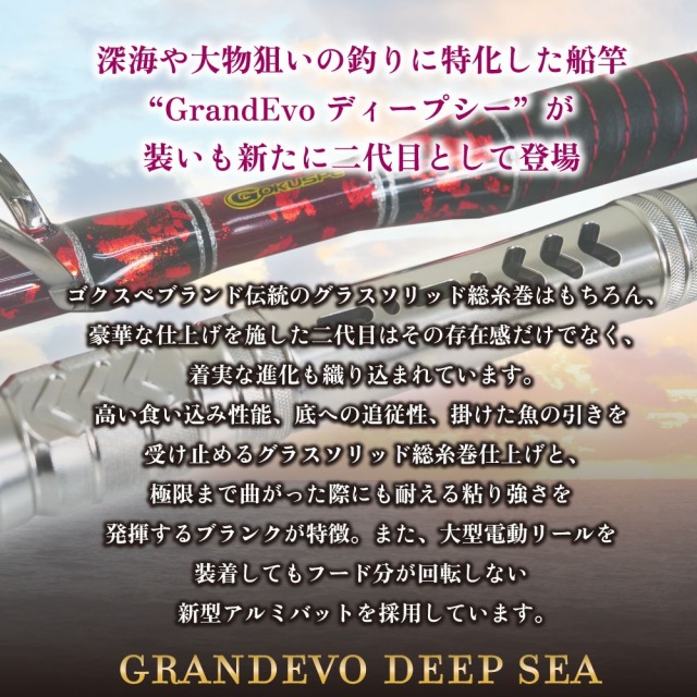 深海や大物狙いの釣りに特化した船竿として人気を集めた”GrandEvo ディープシー”が装いも新たにに二代目として登場。