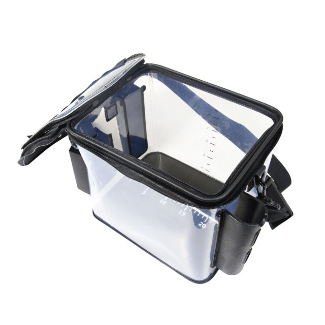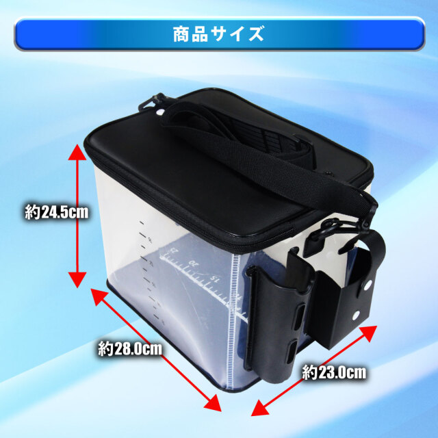 側面はスケルトン仕様なので釣った魚の観察や撮影にも最適。様々なシーンで活躍するアイテムです。