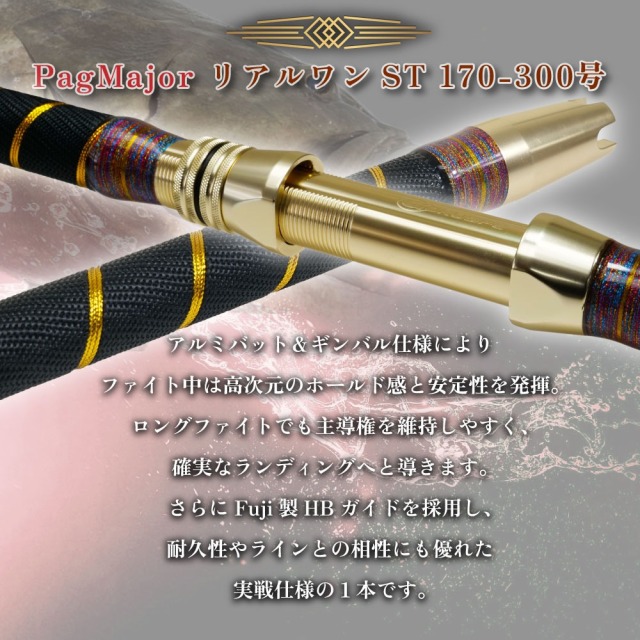 アルミシート&ギンバル仕様によりファイト中は高次元のホールド感と安定性を発揮。ロングファイトでも主導権を維持しやすく、確実なランディングへと導きます。さらにFuji製HBガイドを採用し、耐久性やラインとの相性にも優れた実戦仕様の1本です。