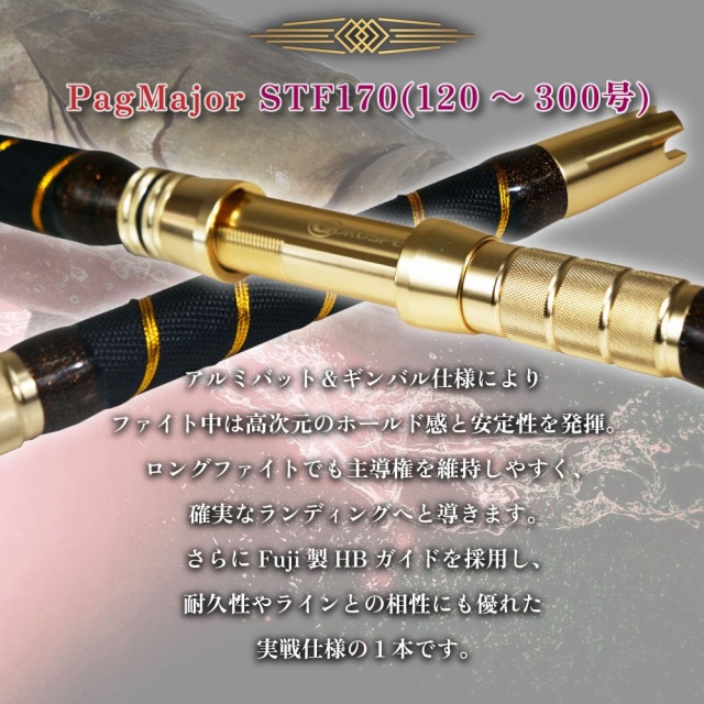 120~300号の錘負荷に対応する強靭なブランクは、ハリス50号クラスの高負荷にも耐える剛性と粘りを兼備。また、パワー伝達性に優れ、巨魚の突進に真っ向から対抗するリフト力を発揮します。