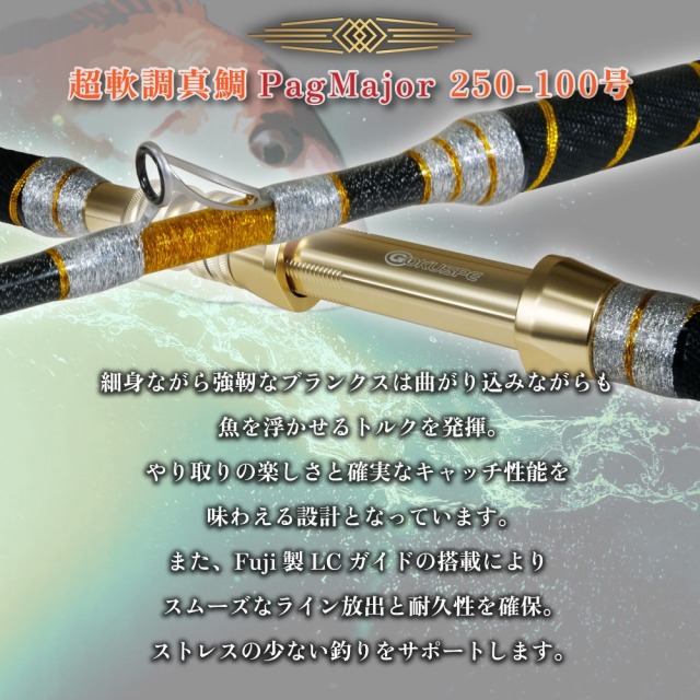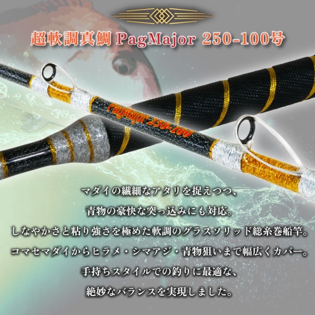 マダイの繊細なアタリを捉えつつ、青物の豪快な突っ込みにも対応。しなやかさと粘り強さを極めた軟調のグラスソリッド総糸巻船竿。コマセマダイからヒラメ・シマアジ・青物狙いまで幅広くカバー。手持ちスタイルでの釣りに最適な絶妙なバランスを実現しました。