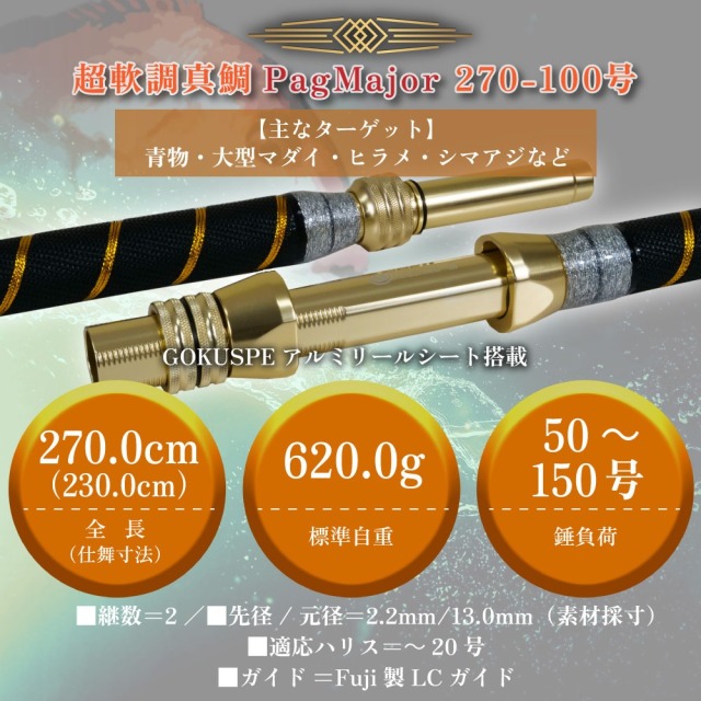 コマセマダイやヒラメ・青物釣りまで安心の設計。Fuji製LCガイド搭載により、ラインの放出性・耐久性・糸絡み軽減を高レベルで実現。全長270cmのロングレングスにより誘い幅と操作性を高めています。
