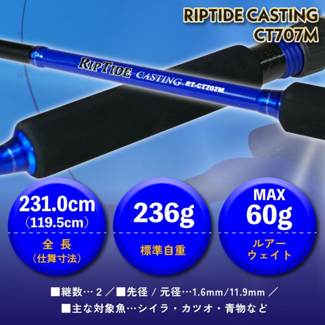 飛距離を伸ばしやすく、広範囲を効率よく探れるレングス設計。また、軽量設計により長時間のキャストでも疲れにくく、船上での取り回しも快適です。