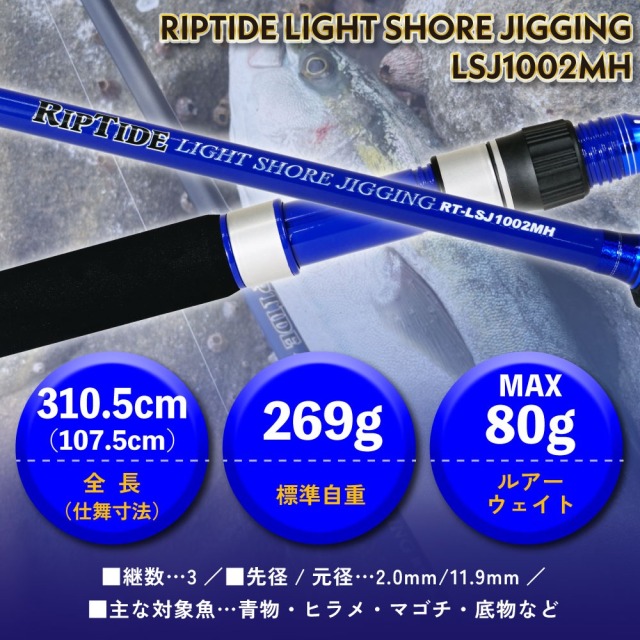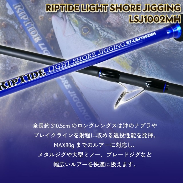 堤防・磯・サーフと幅広いフィールドに対応するライトショアジギングロッド。青物を中心に、ヒラメやマゴチなどの底物狙いにも活躍する汎用性の高い一本です。