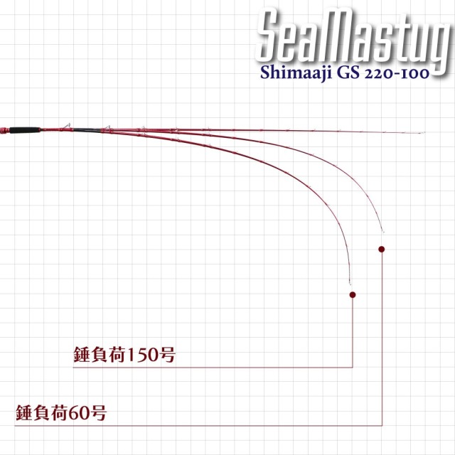 グラスソリッド素材の特性を最大限に引き出す設計により、しなやかな追従性と粘り強いパワーを高次元で両立。全長220cmのロングレングスにより仕掛けの安定性と操作性を高め、オモリ負荷60~150号まで幅広く対応することで、深場や潮流の速いポイントでも余裕あるファイトを実現します。