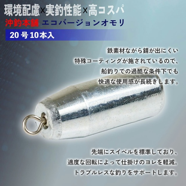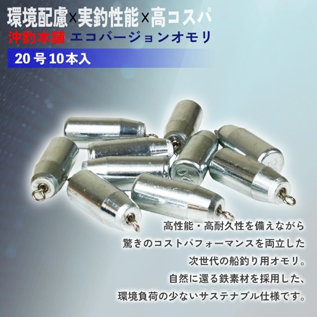 沖釣り本舗から環境と釣り人にもやさしい“エコバージョンオモリ”が登場。高性能・高耐久性を備えながら、驚きのコストパフォーマンスを両立した、まさに次世代の船釣り用オモリです。