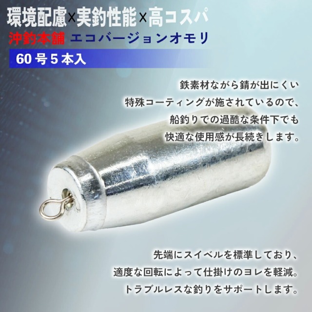 沖釣り本舗から環境と釣り人にもやさしい“エコバージョンオモリ”が登場。高性能・高耐久性を備えながら、驚きのコストパフォーマンスを両立した、まさに次世代の船釣り用オモリです。