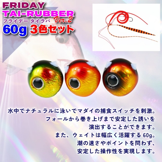 ウェイトは幅広く活躍する60g。潮の速さやポイントを問わず、安定した操作性を実現します。