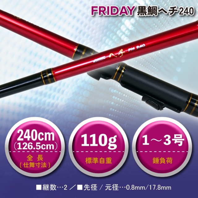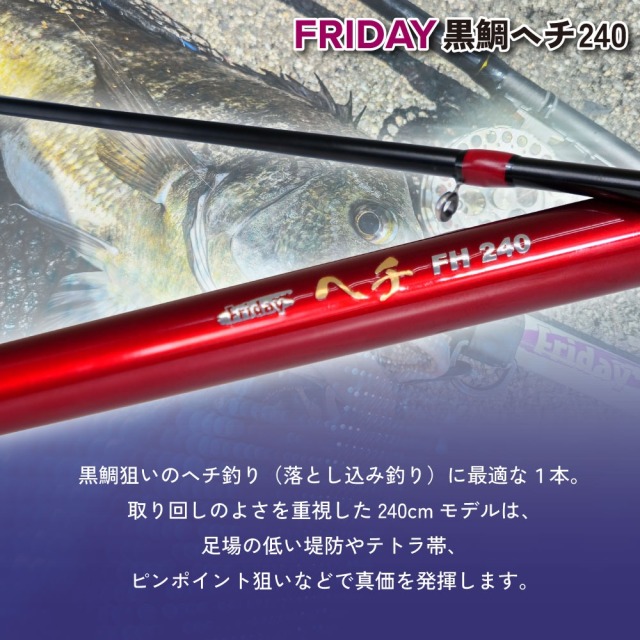 黒鯛狙いのヘチ釣り(落とし込み釣り)に最適な1本。取り回しのよさを重視した240cmモデルは、足場の低い堤防やテトラ帯、ピンポイント狙いなどで真価を発揮します。
