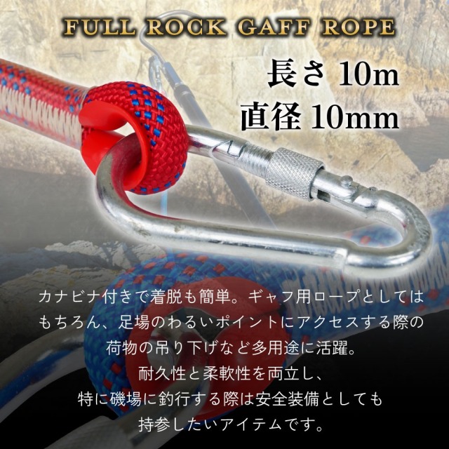 おり釣具本店 HOME フィッシングギアロープ・ランヤード 【送料無料】おり釣具 フルロック ギャフロープ 直径10mm 長さ10m カラビナ付 ブルー/レッド(ori-fr-)|青物 ブリ ショアジギング ランディング ロープ ギャフロープ ロックショア 磯釣り 6M ギャフ ヒラマサ カンパチ 釣り 価格: ¥2,426 (税込) [ポイント還元 24ポイント~] 販売期間: JANコード: 4582632786034 数量: 個 カラー在庫購入ブルー○ 在庫有 レッド○ 在庫有 カラー在庫購入ブルー○ 在庫有 レッド○ 在庫有 返品についての詳細はこちら レビューはありません 直径10mm・長さ10mの扱いやすいギャフロープ。ロープ連結部を含めた強度は1,125kg、ロープ自体の強度は約1,600kgと、高い耐久性としなやかさを兼ね備え、安定したランディングをサポートします。 カラビナ付きで着脱も簡単。ギャフ用ロープとしてはもちろん、足場のわるいポイントにアクセスする際の荷物の吊り下げなど多用途に活躍。特に磯場に釣行する際は持参したいアイテムです。 ・長さ…約10m ・直径…約10mm ・重量…約760g ・強度(ロープ連結部を含む)…1125kg 「社内管理番号1」 ▼新規会員様募集中 商品仕様 JANコード: 4582632786034