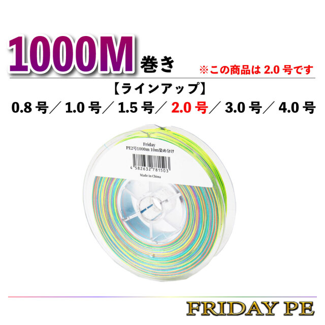 【6Cpost】おり釣具 船釣りにおすすめ オリジナル Friday PE2号 1000m 10m/5色マルチカラー(ori-pe1000-781503)