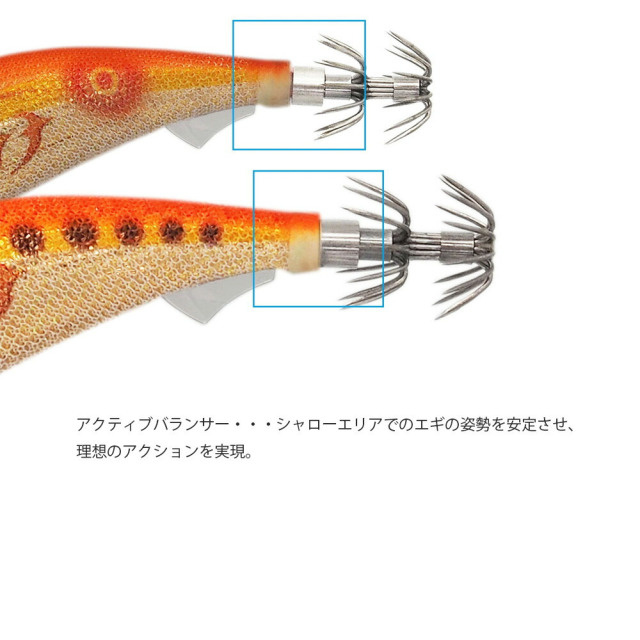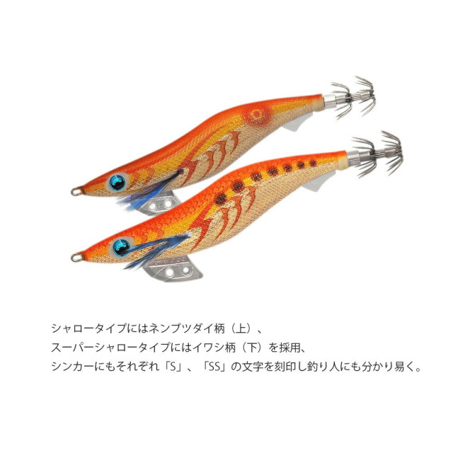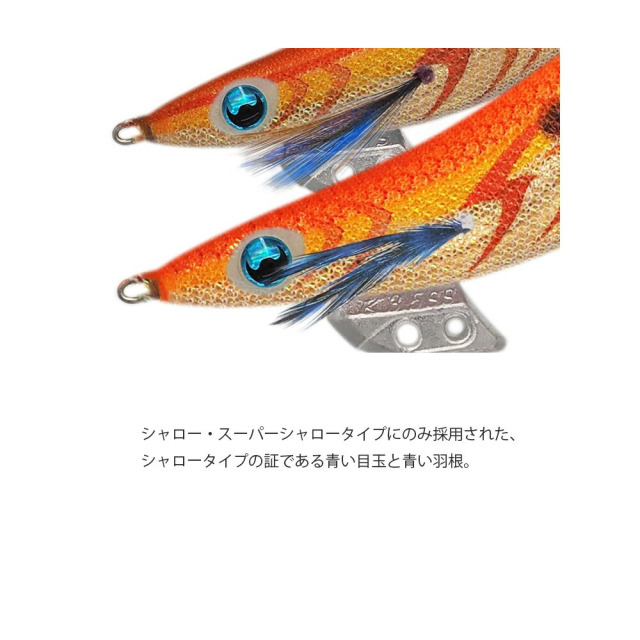 シャロー攻略には欠かせない3タイプを展開し、様々な場所や状況に対応。アクティブバランサーを採用することで、アクションが小さくなりがちなシャロータイプのエギに、ダイナミックでメリハリのある動きを可能にした。さらに、背中から不要な模様を排除することで、シャローエリアでの視認性をより高め、エキサイティングなエギングを楽しむことが出来る。暗色系のカラーにもサイトカラーヘッドを搭載し、釣り人からの視認性を確保するなど、本気でシャローを狙うエギンガーには欠かせないモデル。
